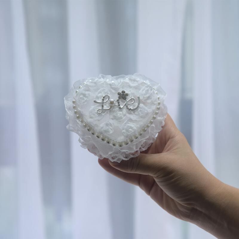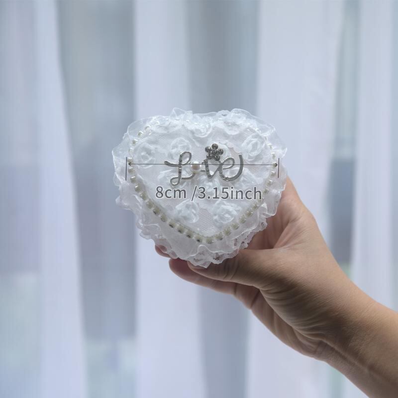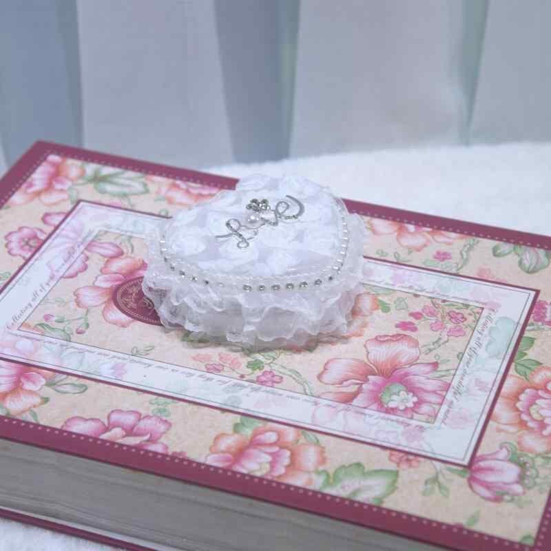 リングケース ハート型 花嫁 ブライダル ウェディング リングピロー ミニボックス アクセサリー収納 レース装飾 プチギフトボックス