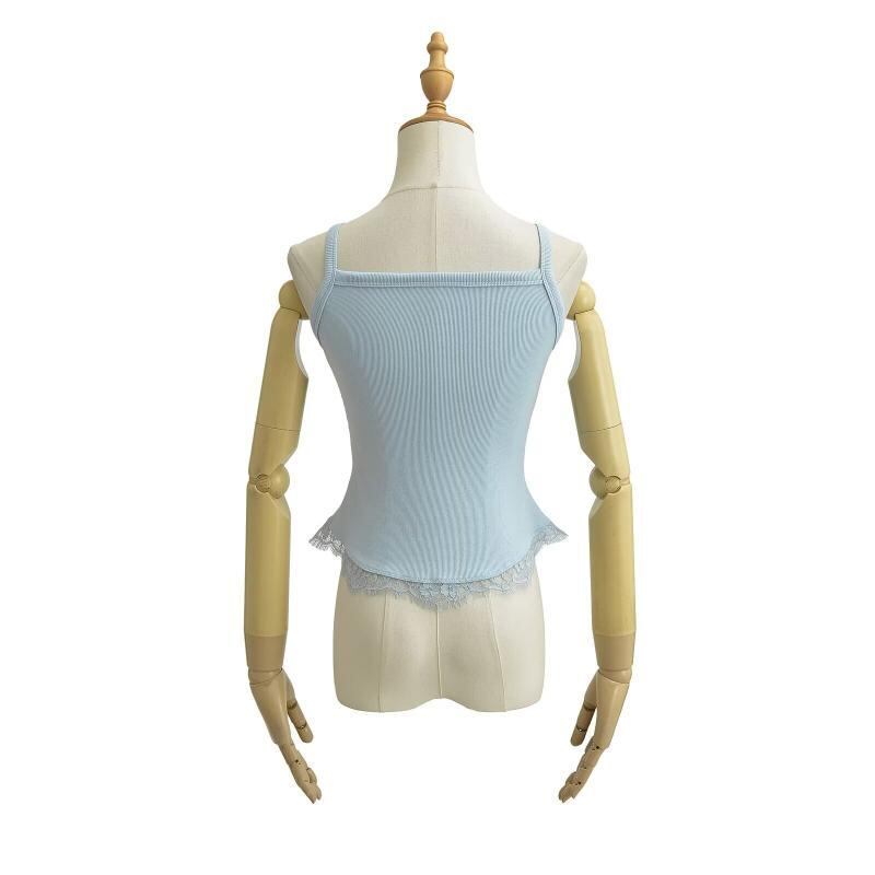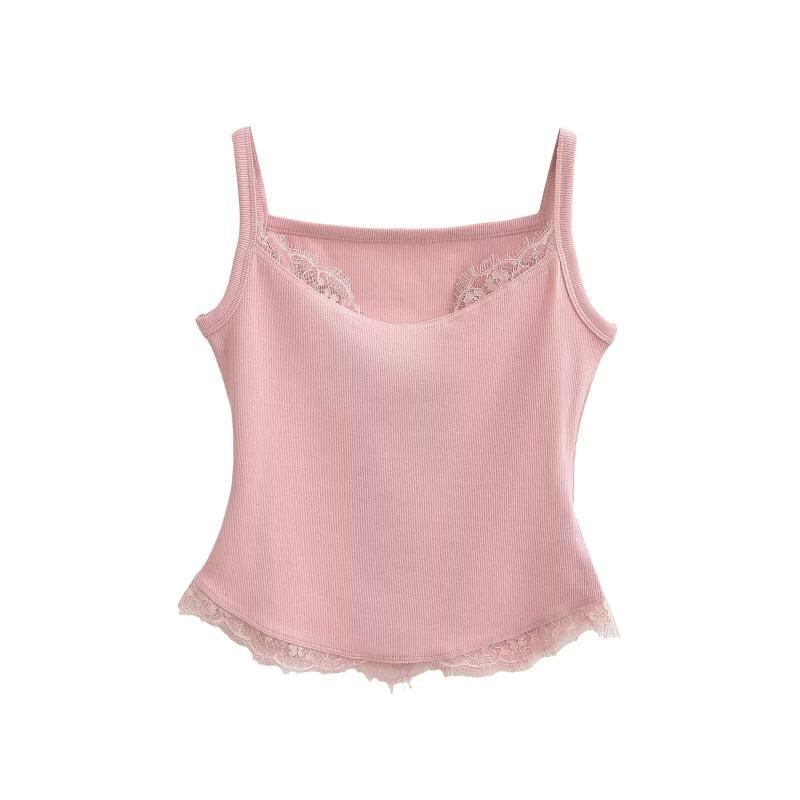 キャミソール タンクトップ レディース デザイン性 アイラッシュレース スリム クロップド丈 へそ出し セクシー 肌見せ ポリエステル素材 春夏
